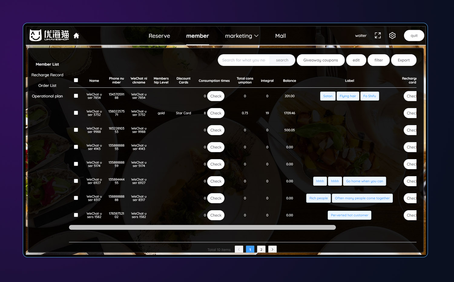 優(yōu)海貓CRM客戶管理系統(tǒng),提供客戶預(yù)約、充值、等級(jí)、積分、短信營銷在內(nèi)的客戶管理和營銷功能,幫助商家建立粉絲群體,實(shí)現(xiàn)良性口碑傳播。