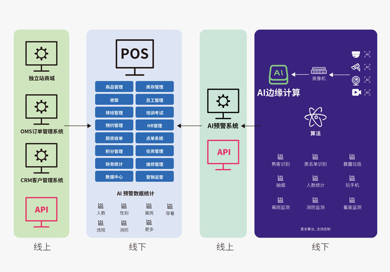 利用包括人臉識別、指紋識別、傳感器、ai菜品識別等在內(nèi)的ai神經(jīng)網(wǎng)絡(luò)計算,實現(xiàn)精準用戶識別、黑名單播報、門禁開啟、菜品識別稱重等功能。